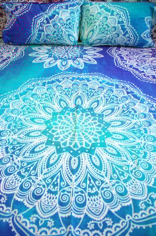 Boho-dream your night away with one of our mandala throws or throw sets. Throw set includes one throw (not a doona cover) and two matching pillow cases.